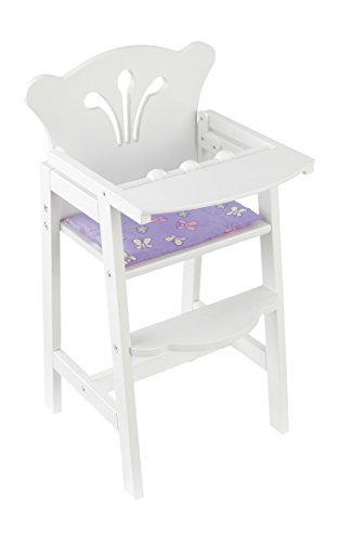 - KidKraft's Lil Doll High Chair has a crisp white lacquer finish with scalloped edges, and filigree cut out detail. Plus, with a pink and white rattle bar, foot rest, and a reversible mint/lavender pad, the high chair comfortably seats a 19" doll for breakfast, lunch or dinner. Because kid-safety is a priority, rubber stops between the tray table and chair protect little fingers from getting caught.